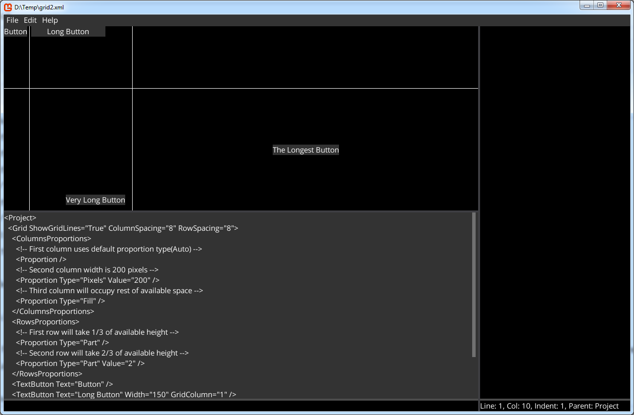 grid.Widgets.Add(veryLongButton);It is equivalent to the MML: