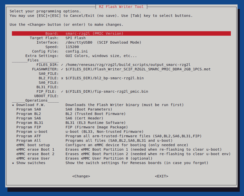 ./flash_writer_tool.sh my_config.ini atf# RZ/Five: