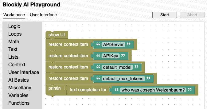 experiment with AI and build your own AI agents using Blockly - even if you are a complete beginner! (also suitable for school lessons)