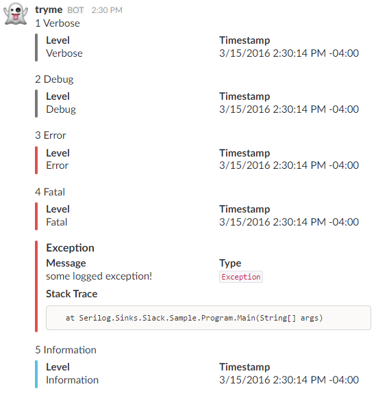 .CreateLogger();It's possible to override CustomChannel, CustomUserName, CustomIcon configs using LogEvent properties.
