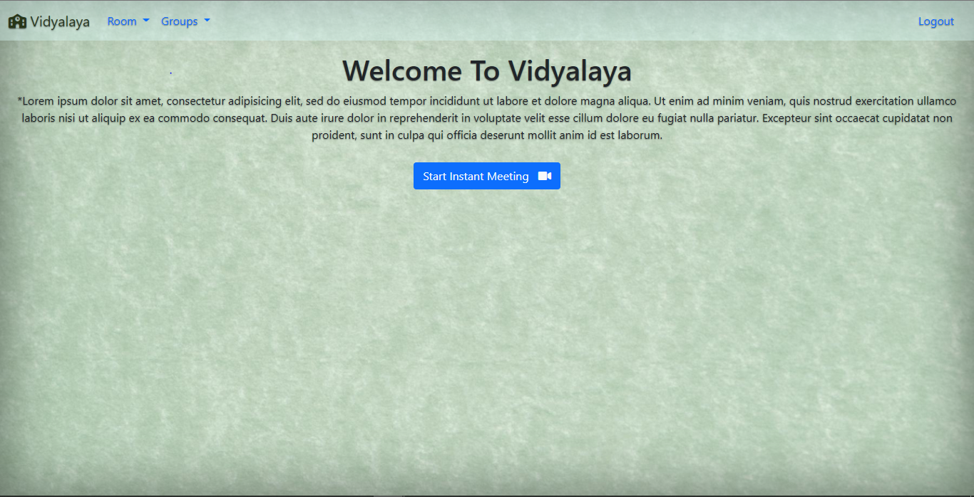 Its an online video calling platform having an inbuilt person monitoring system funtionality. Its also having an anonymous chat system . First person have to login in website. Users can also form Groups and join meeting accordingly. This application is also having an Instant meeting features and can share ID via e-mail or messenger app