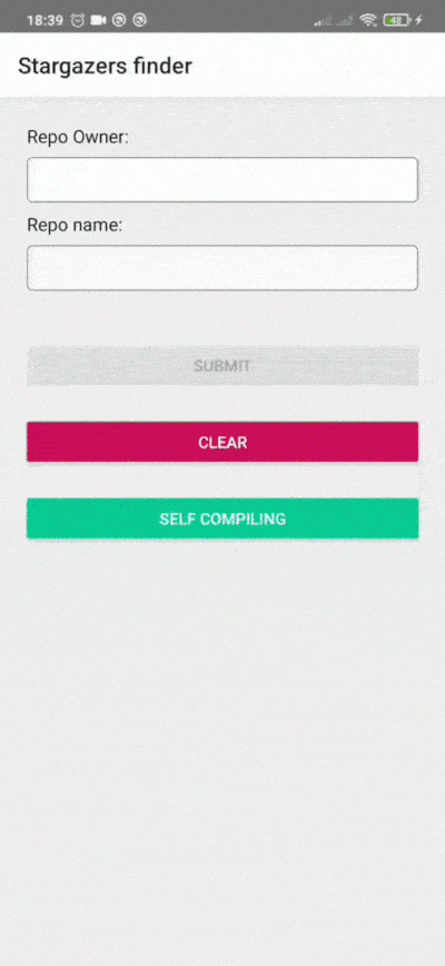 Insert repository owner and repository name and click on submit button to get the related Stargazers list.