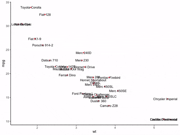 ggplot(mtcars, aes(wt, mpg, label = rownames(mtcars))) +