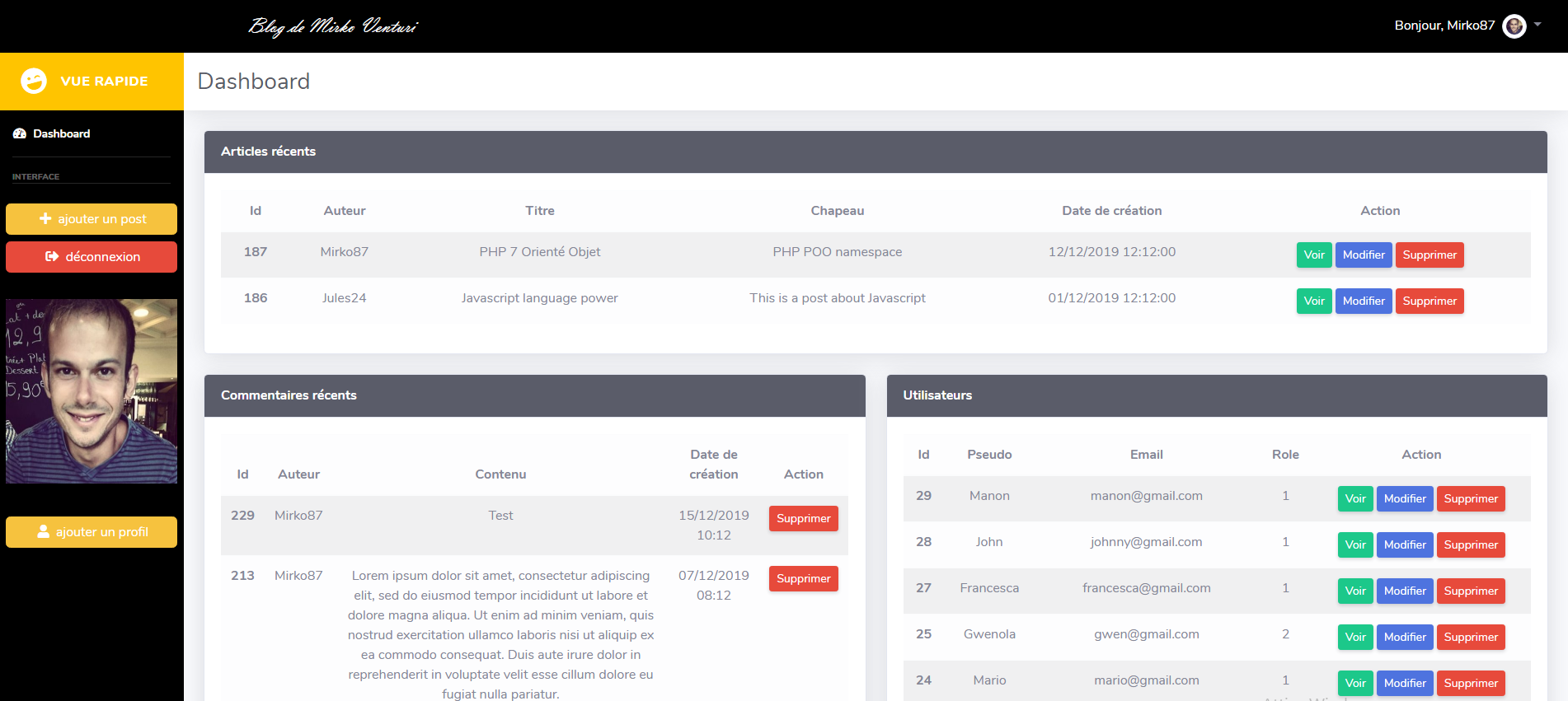 - Vous disposez désormais d'un compte administrateur qui vous permet de gérer votre blog via le tableau de bord.