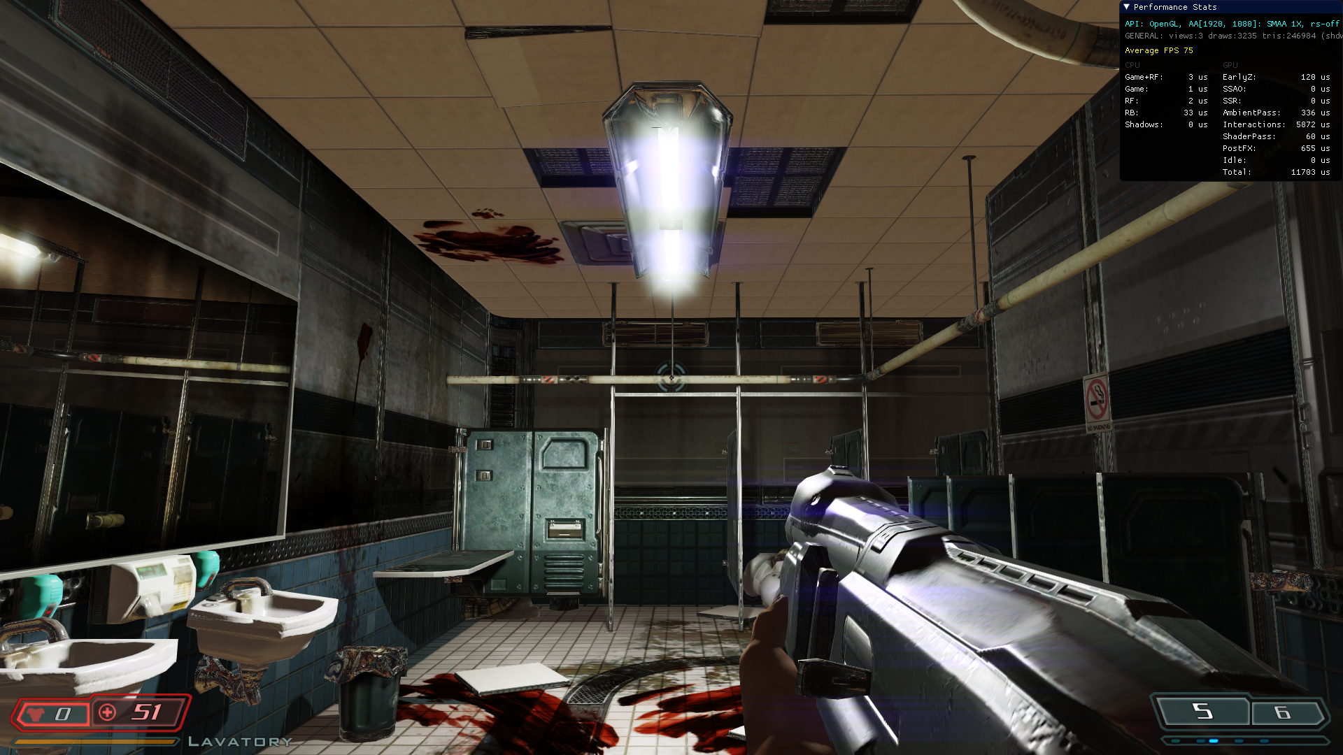 Q: Why bother with DOOM-3-BFG in 2021? A: It is fun, period. Doom 3 is from 2004 but is still an impressive and entertaining game. In 2011 id Software added lot stuff from the development of Rage like its own Flash SWF and ActionScript 2 interpreter, proper support for gamepads and widescreens. It also combines the gamecode for Doom 3 and its missionpacks and runs it in a seperate thread and it has many multithreaded rendering optimizations. DOOM-3 and DOOM-3-BFG are some of the most transparent games available where you can open all files and inspect how the game was built. Unlike Quake 1-3, DOOM-3-BFG shipped with all level .map sources for 47 single player maps. There is plenty of stuff you can learn from it like solid run & gun core gameplay, AI, animations, client/server multiplayer, level design or simple and elegant engine design.
