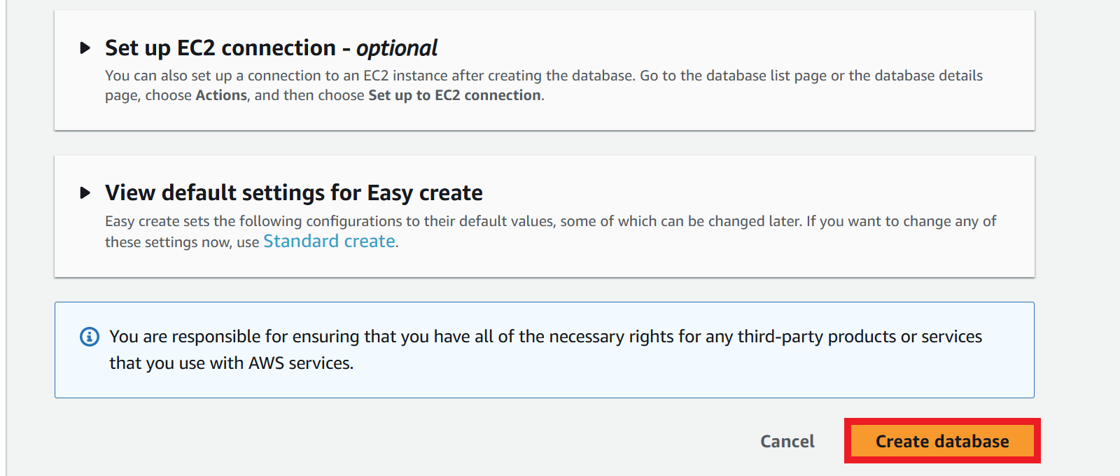 Go to the AWS RDS webpage and create an account or sign in. For ease of use, a hyperlink to the webpage is included in this tutorial. Next, go to the search bar and search for RDS.