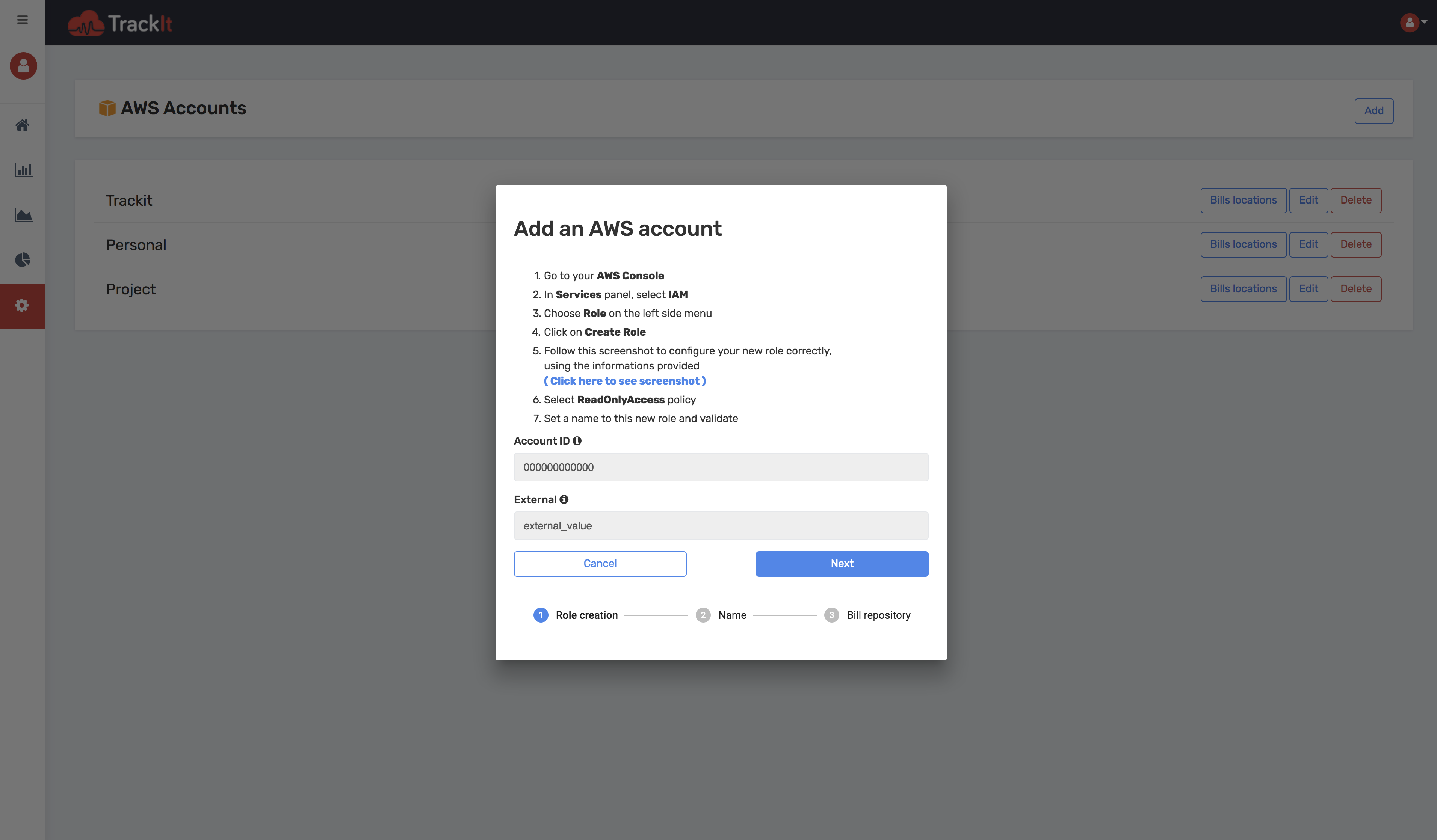 N.B. : If you are not running TrackIt on your local machine, you need to replace the URL of the API.