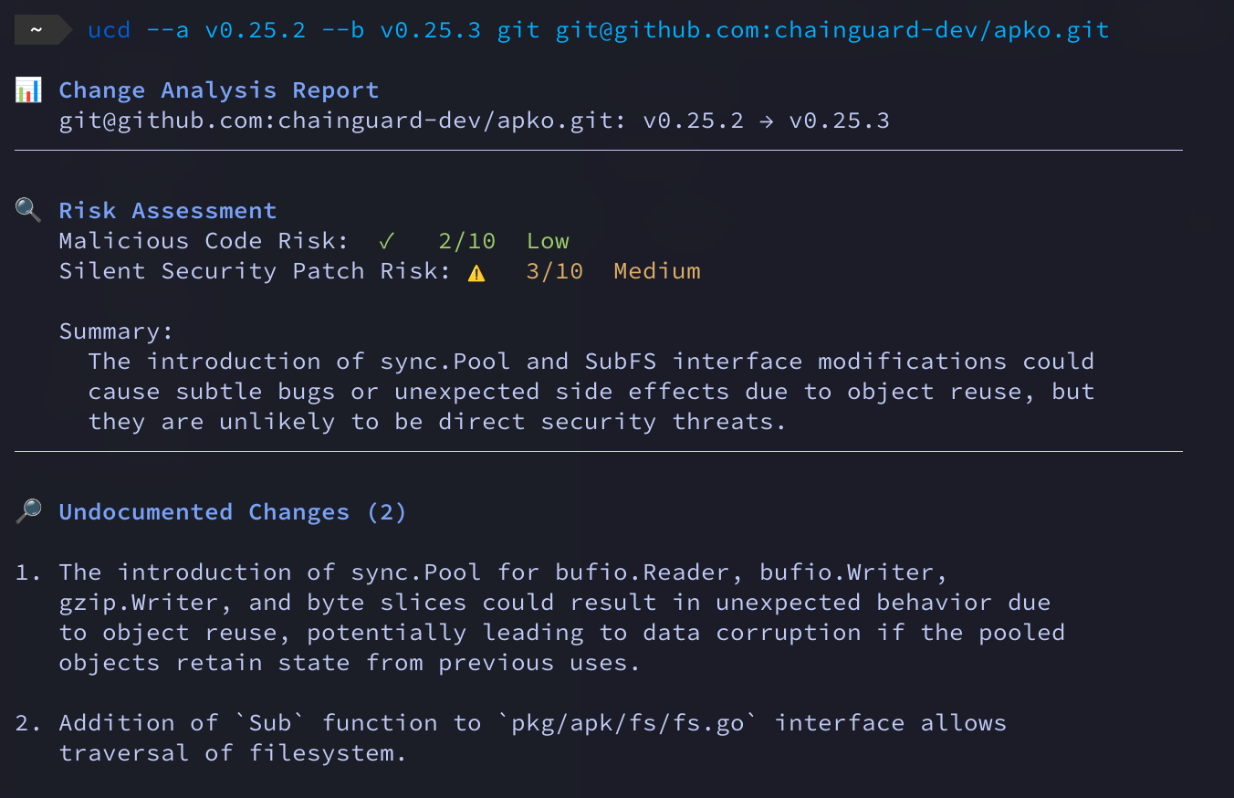 UCD is your AI-powered security sidekick that helps detect sneaky code changes between software versions using Google's Gemini AI.