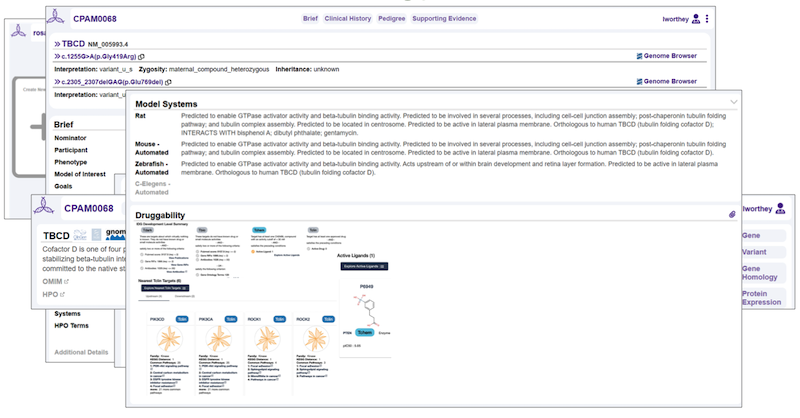 Rosalution assists researchers and physicians collaborating on studying genetic variation 𧬠in patients π§πΎβπ€βπ§πΌ to generate definitive diagnoses and aid in the understanding of pathogenic mechanisms. It also guides the development of accurate predictive models and refine existing or suggest new therapeutic approaches. The application facilitates researchers streamlining the selection of candidate animal models πππ :worm: to replicate the patient variation to further research to derive, diagnose, and provide therapies for ultra-rare diseases.