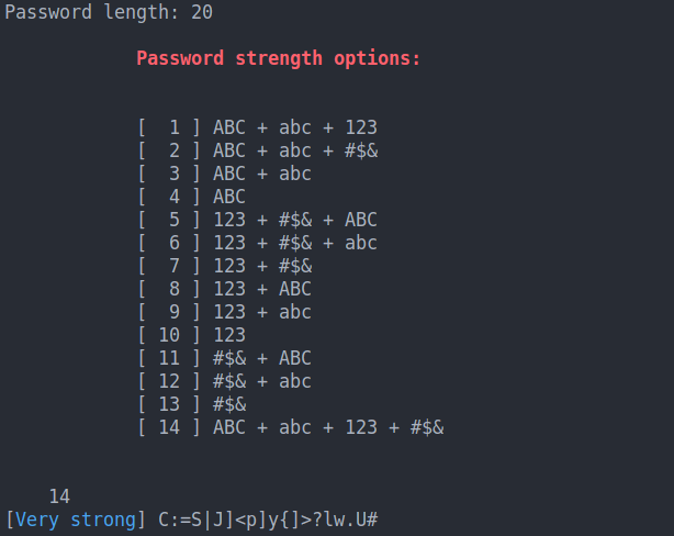Este projeto é pessoal, porém ele busca realizar a nivel de linha de comando uma ação costumeira que é geração de senhas atendendo padrões de segurança e classificando a força delas.