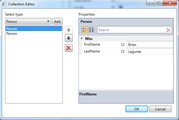 | NewItemTypes | Gets or sets a list of custom item types that appear in the Add ListBox. |