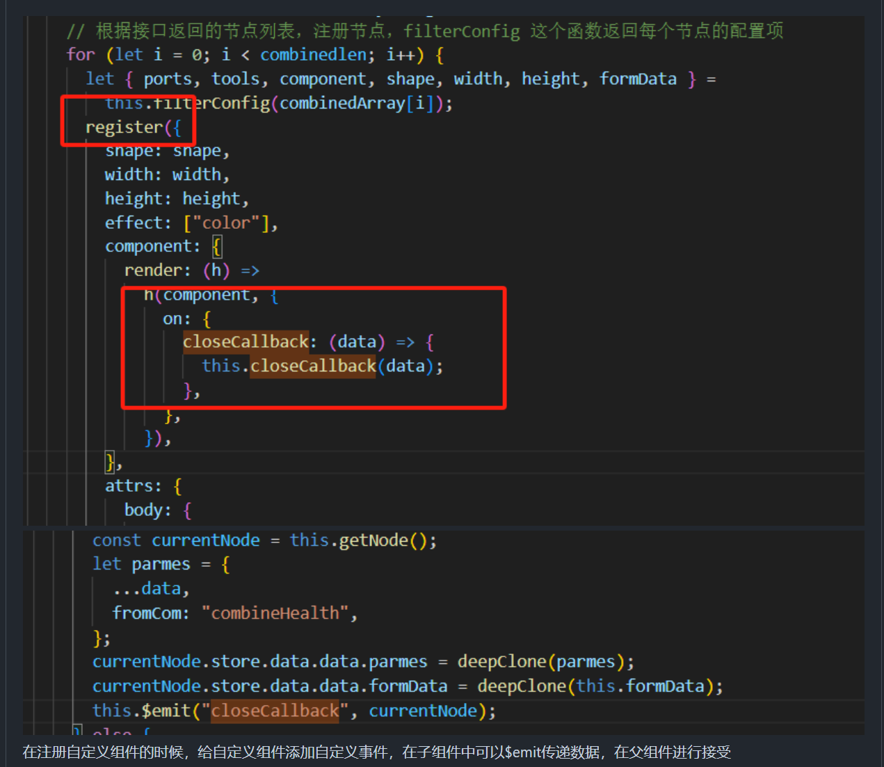 }这个方案就可以随便玩了,不再局限于我自己的需求,如果还要在节点上加其它的控件都可以完美的把数据传递到父组件,其灵感来源于github的小伙伴qw123gz,问官方交流群的群主,问了半天也没有给出方案……