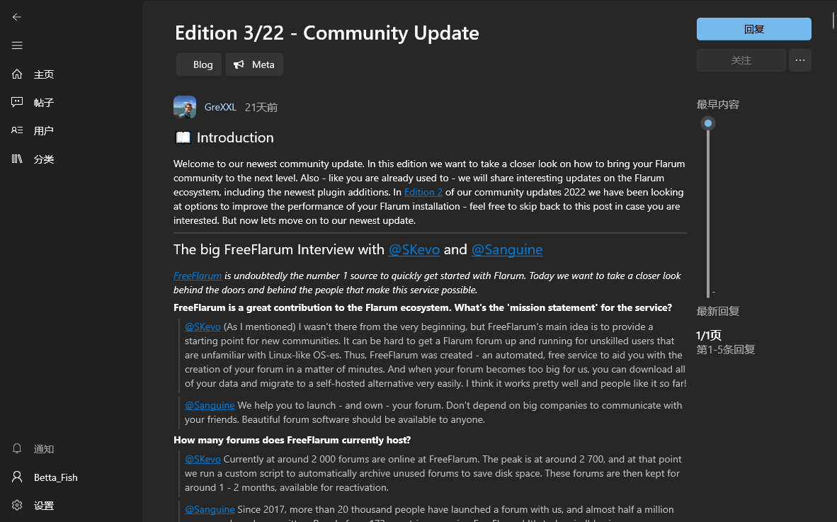 FlarentApp Flarum的UWP客户端! 下载 https://discuss.flarum.org.cn/d/3829 已实现的功能 看帖 登录 回复 查看用户 下载讨论 ... 屏幕截图 此为Win10下的效果,Win11下将默认开启Mica Acrylic Dark Light