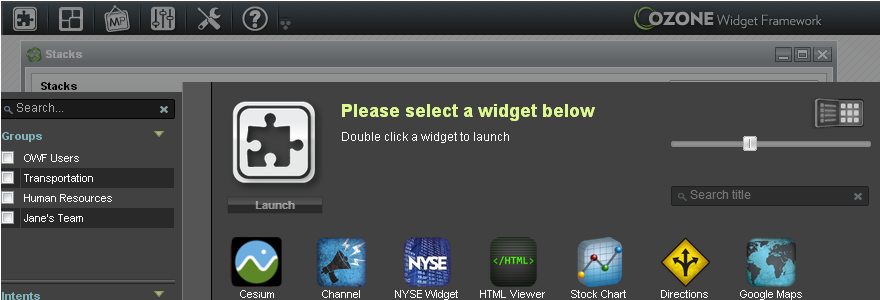 The Ozone Widget Framework (OWF) is an open-source platform that allows users to build web applications using a wide variety of widgets that can communicate via a common API. This project would integrate a new Cesium widget with Ozone.